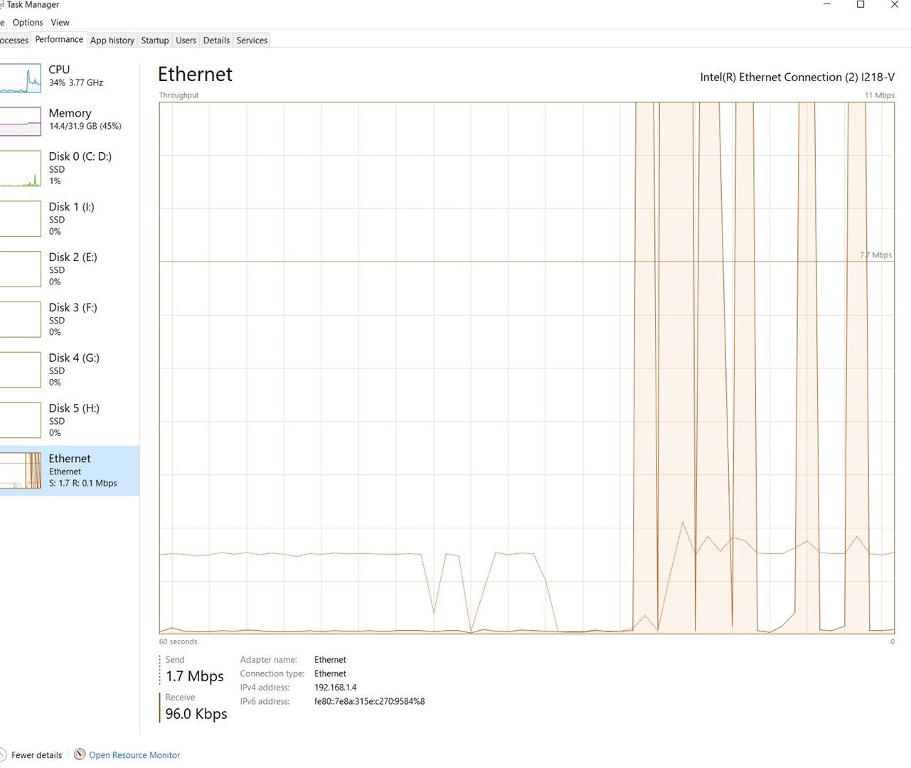 Tuning in to report that I have the same problem. Two devices connected via ethernet (LAN) that can find each other without problem (can ping each other) where audio stops and resumes every minute or so. Tried all the different things, both machines are up to date, the software is up to date.