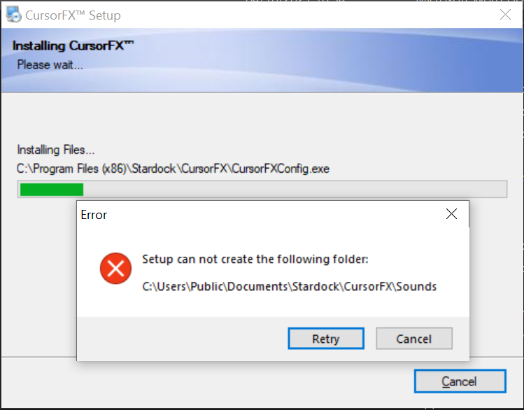 I tried to install CursorFX via the ObjectDesktop app and I a red error popup with "CursorFX - Problem: Code 121".
