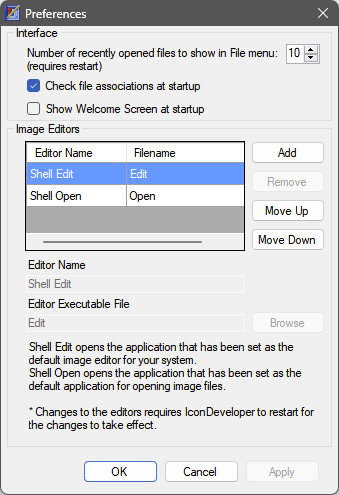 It seems that there is no registered Edit application. I had presumed that IconDeveloper would perform the editing within the program itself rather than relying on an external program.