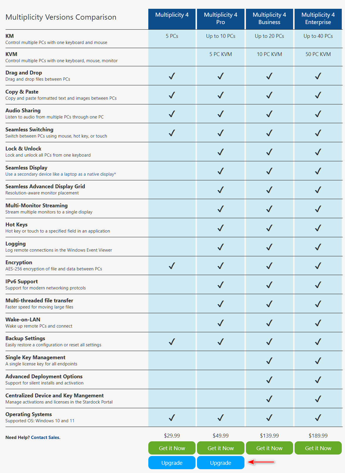 In 2017 I paid for Multiplicity for $19.99 Used it fine for years. Then 4-5 months ago couildnt find the keycode. Now i finally found it and it doesnt work won the new version of Mult 4.0. I have 1ea win7 and 2ea win11pcs. i only want to use the mouse and keyboard on all three pc's I tried the Mult4.0 demo since i couldnt find the Key back a month ago. now im really needing this type of thing. can you tell me what version I need for the $19 i paid for multiplicity that my Key will work with and if it will work on win7 and win 11. I have older programs that i want to make sure they still work so i keep a win7 pc around for now.