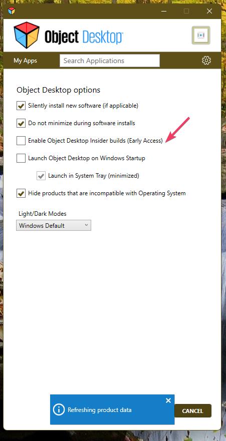 Many programs don't show in object desktop insider. Several programs that were bought before installing object desktop only show but you can't start them or configure them, you have to goto the individual program to start. You can't even do a FORCE update in object desktop only automatically by setting time & day. Sorry but my PC is not on 24/7.