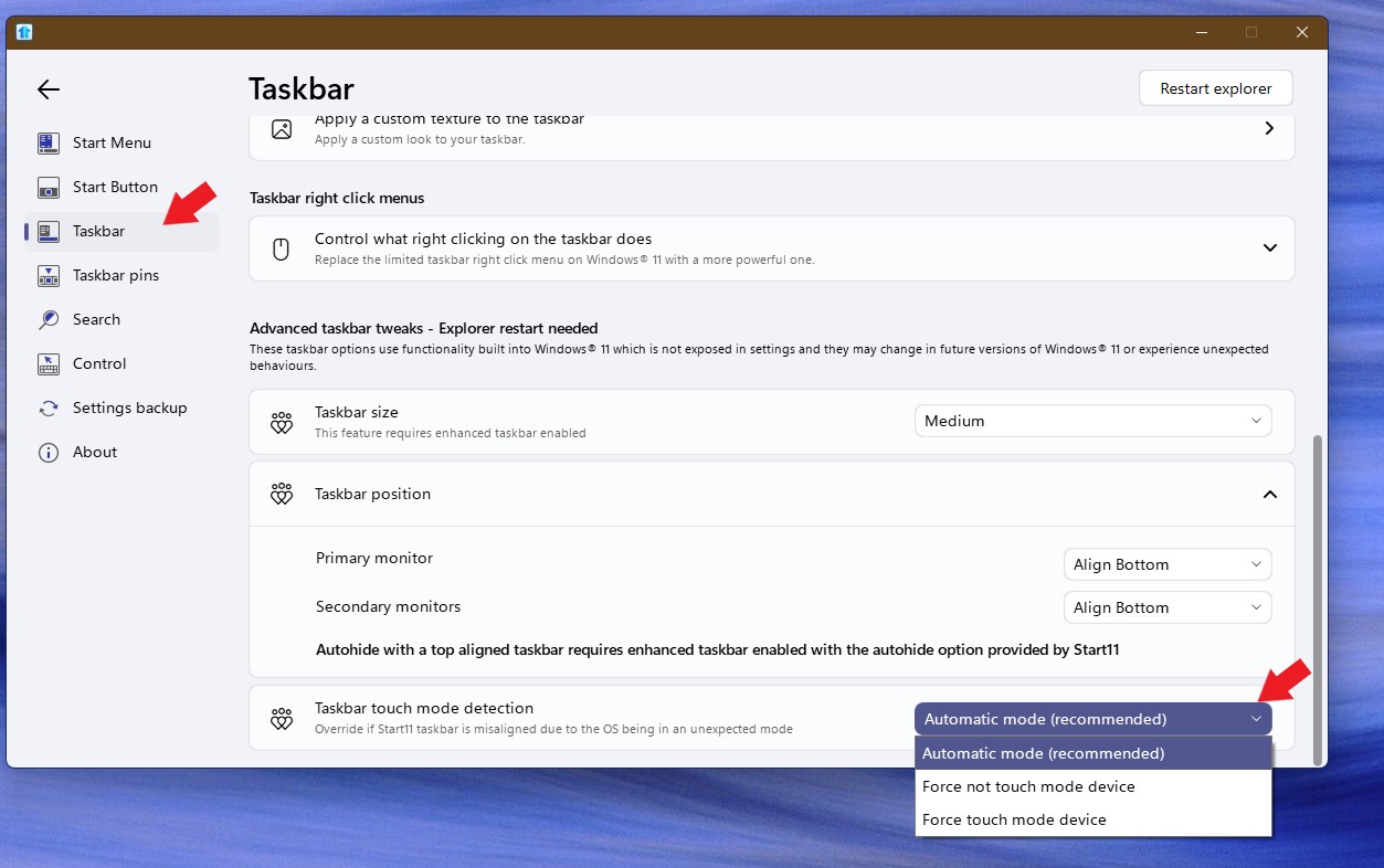 But this seems to only apply to pinned button shortcuts. Is there a reason for this? I would have expected it to also affect the “Start” button, the search button, widgets, and the tray symbols.
