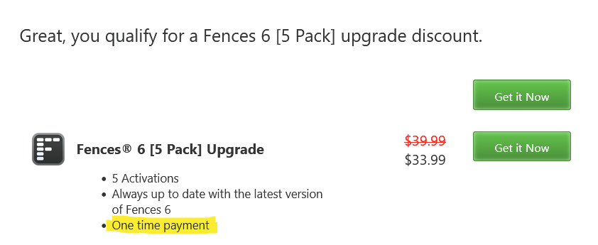 I want to upgrade from 2 permanent licenses for Fences v. 4 to permanent licenses for Fences v. 6. Will this purchase give me five permanent licenses?