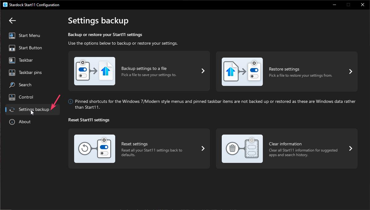Perhaps, you can try these guide: https://support.stardock.com/space/SHC/1335820295/Back-up+Start+Settings.