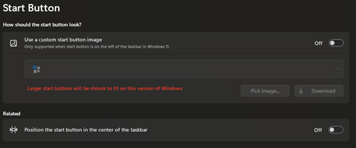 Now I cannot change the Start Button without sending it to Center Aligned but it doesn’t show that in settings.