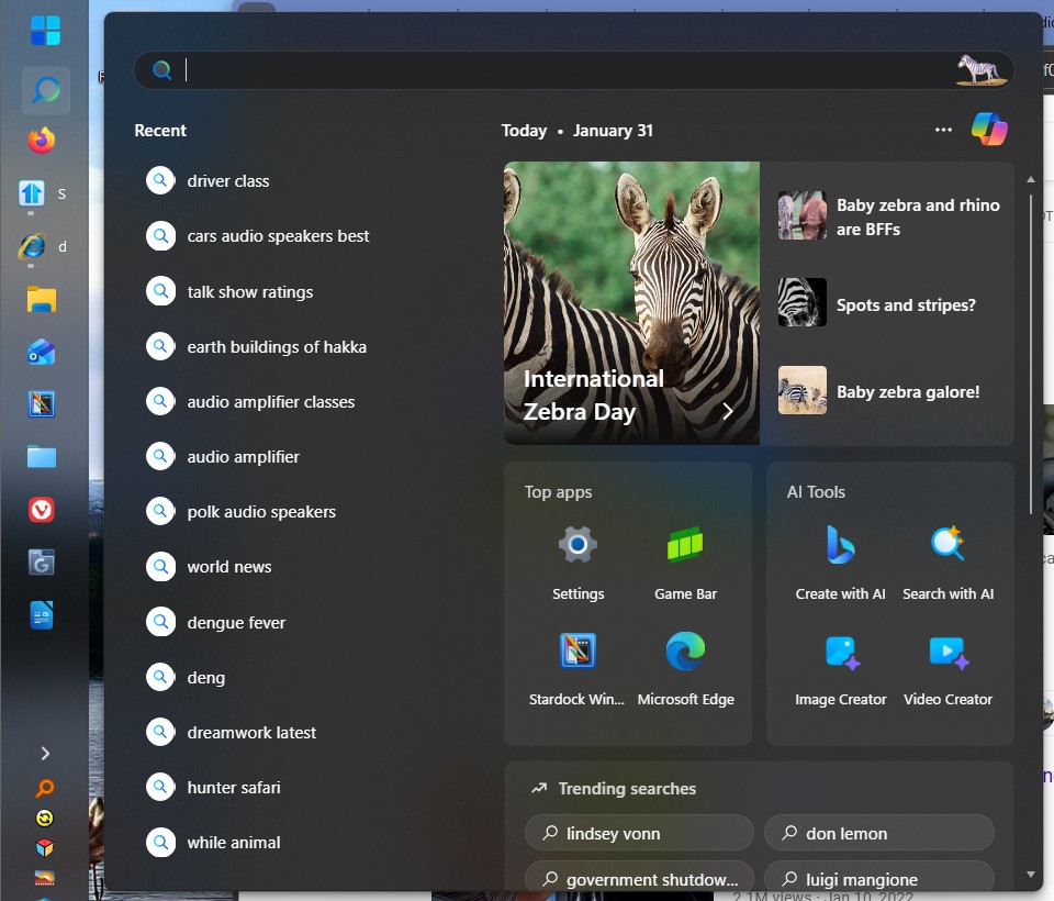 I'm using the latest (V2.6) version of Start 11. I have the start menu set to Windows 10 style, and my taskbar vertical and aligned left.