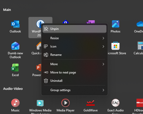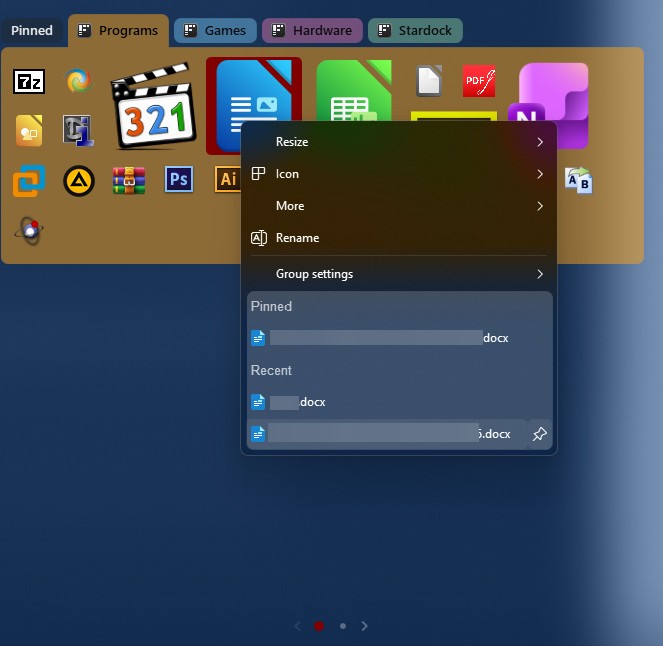 Start11 Recent Documents on context menu (right click on icon) missing