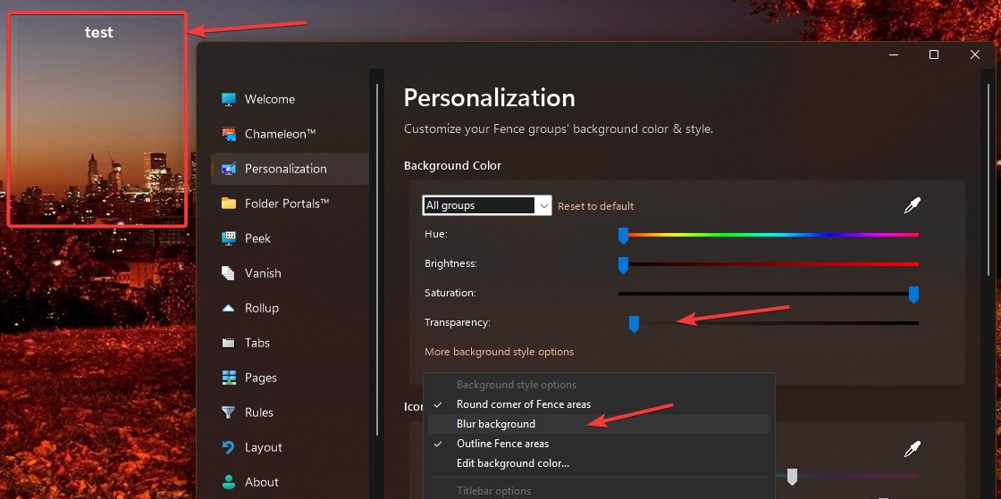 Cannot set transparent background for Fences