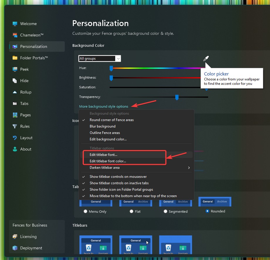 I just updated to Fences 6.20 and can't find a way to edit the font type and style in each fence header. Any suggestions?